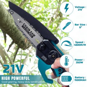 OEM 6 Inch Professional Cordless Mini Chainsaw | 21V Powerful Battery Operated Wood Cutter | One-Han...