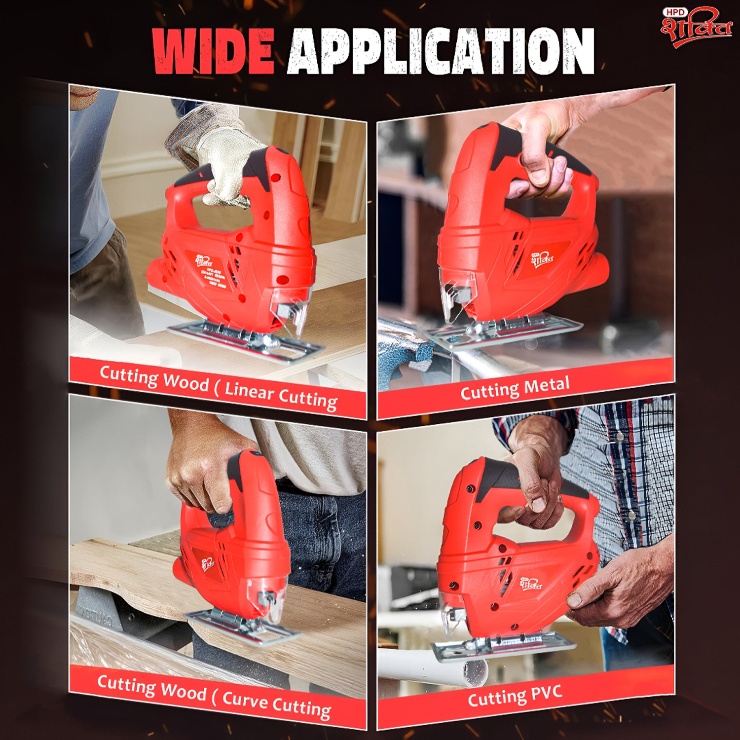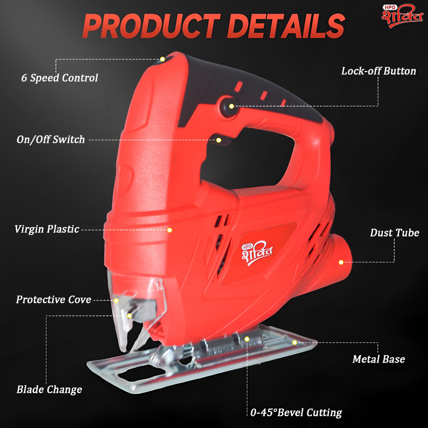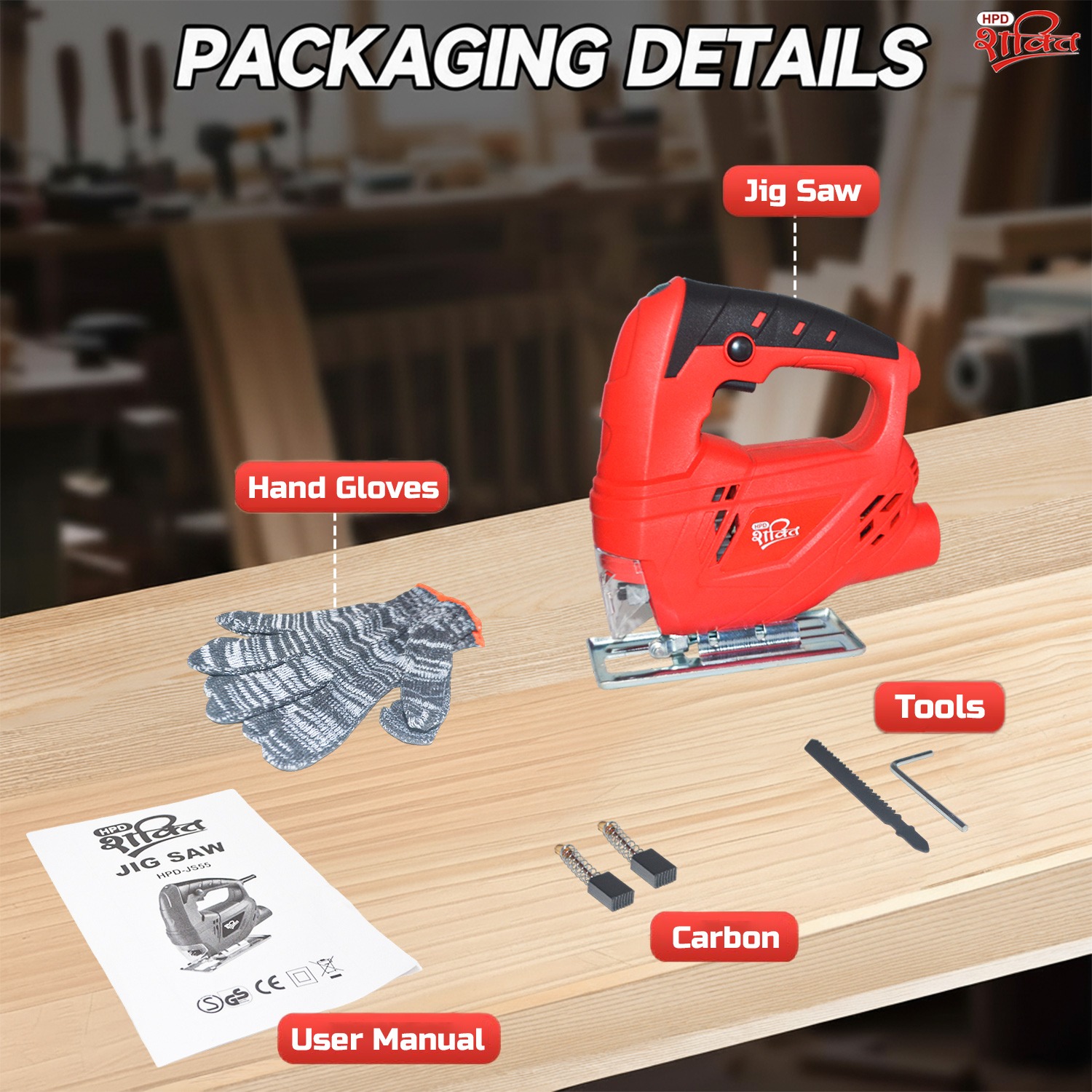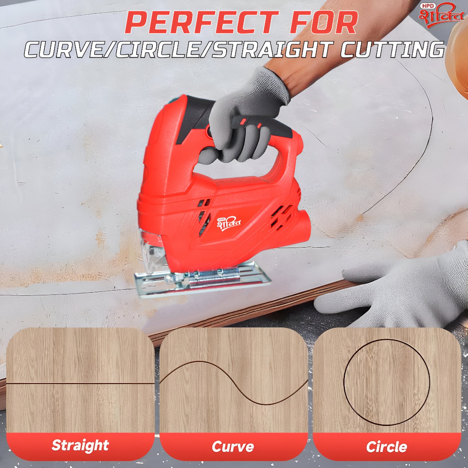 The HPD 550W Electric Jigsaw is a high-performance tool designed for both DIY enthusiasts and professional users who need precision, power, and versatility. Equipped with a robust 550W motor, this jigsaw delivers speeds of up to 3000 RPM, allowing you to make smooth, accurate cuts with minimal effort. Its 55mm cutting capacity ensures that it can handle a wide range of materials, including wood, plastic, and thin metal sheets, making it ideal for home projects, woodworking, and professional applications. The tool is built with 100% copper winding, ensuring durability, consistent performance, and long-lasting operation. Its ergonomic design provides a comfortable grip, reducing fatigue during prolonged use, while the lightweight build allows easy handling and maneuverability. The variable speed feature gives you precise control over the cutting process, allowing you to adjust the speed according to the material for optimal results. This jigsaw is perfect for intricate cutting tasks, including curves, bevels, and detailed designs. Whether you are working on furniture, home improvement, or DIY crafts, the HPD 550W Jigsaw offers the reliability, power, and precision required to complete your projects efficiently.