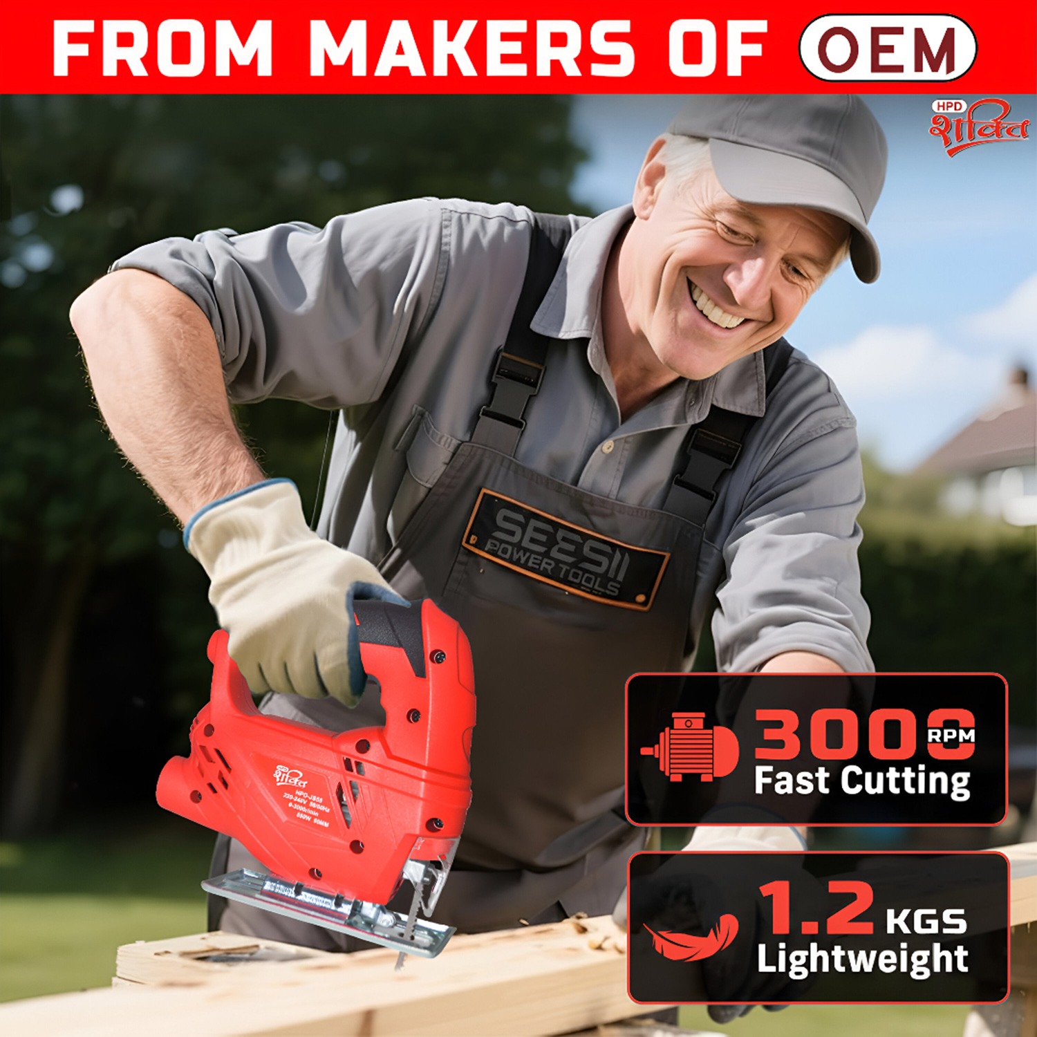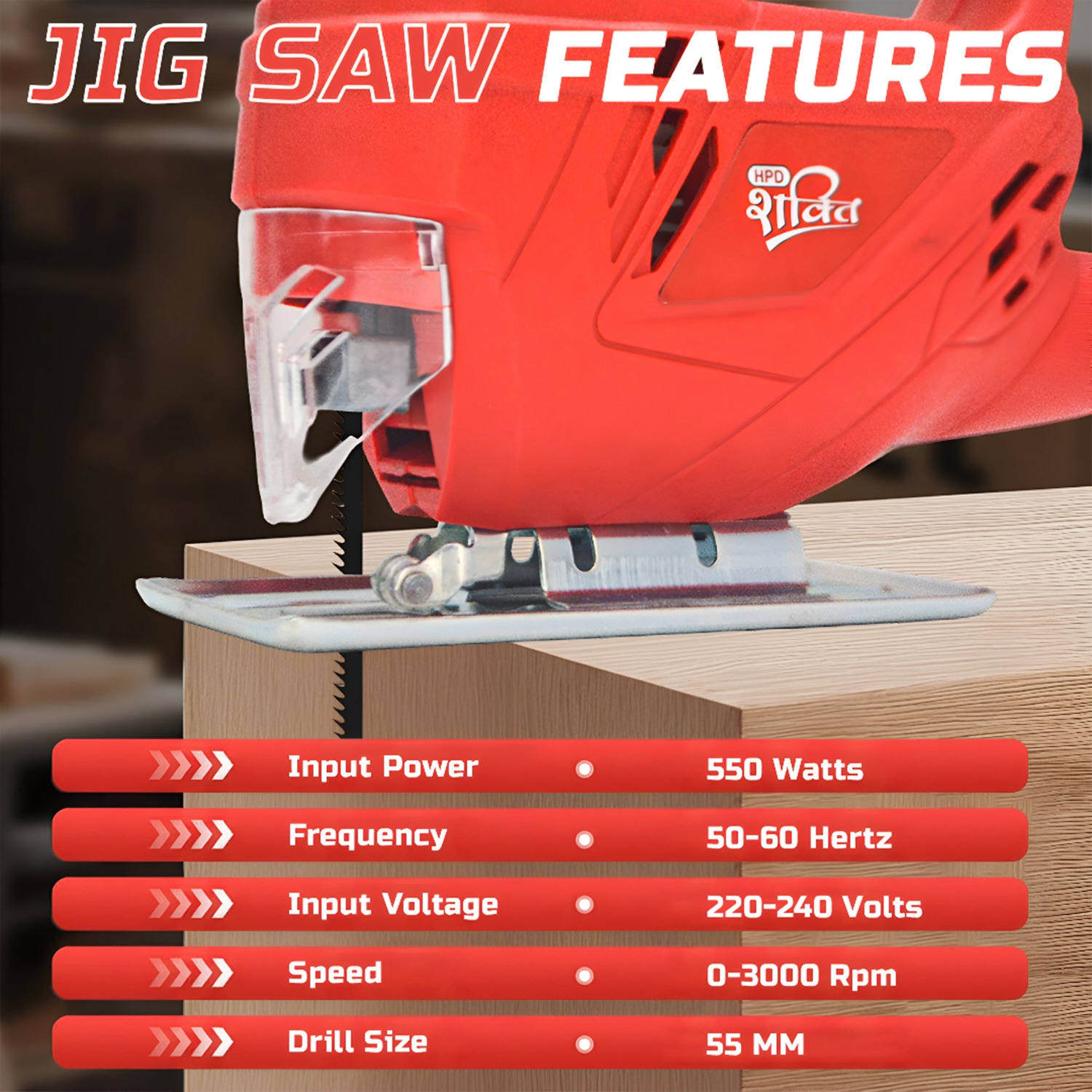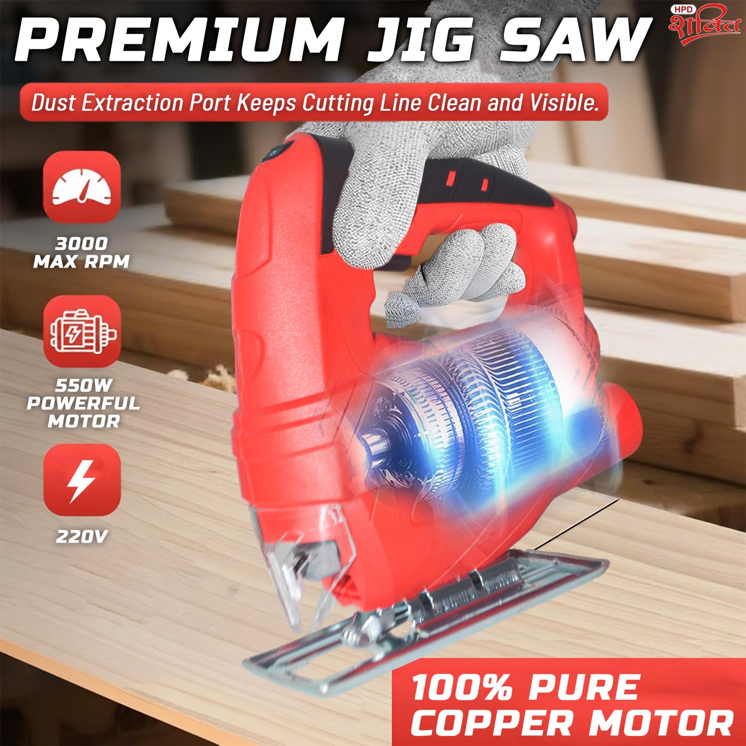 HPD JS55 Professional Jigsaw, 550W Electric Jig Saw, 55mm Cutting Capacity, 3000 RPM, Variable Speed, 100% Copper Winding, Heavy-Duty Design for Wood & Metal Cutting