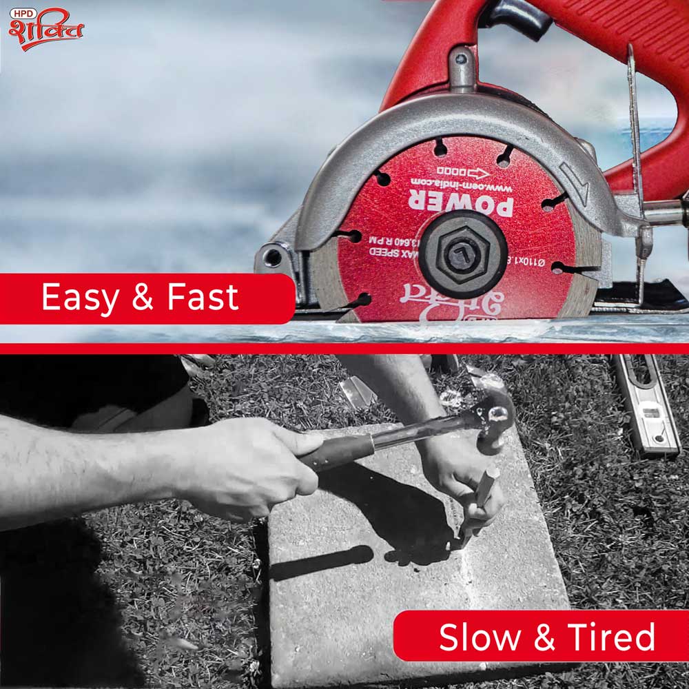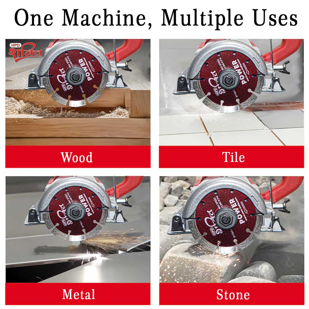 This machine features a 110mm (4-inch) blade capacity and a high speed of 11,000 RPM. It guarantees fast and clean cuts on marble, tiles, granite, wood, and MDF sheets. Its flat body design provides better control in tight spaces, while its lightweight and ergonomic build makes it ideal for both professional contractors and DIY users. See our complete collection of marble cutting machine.