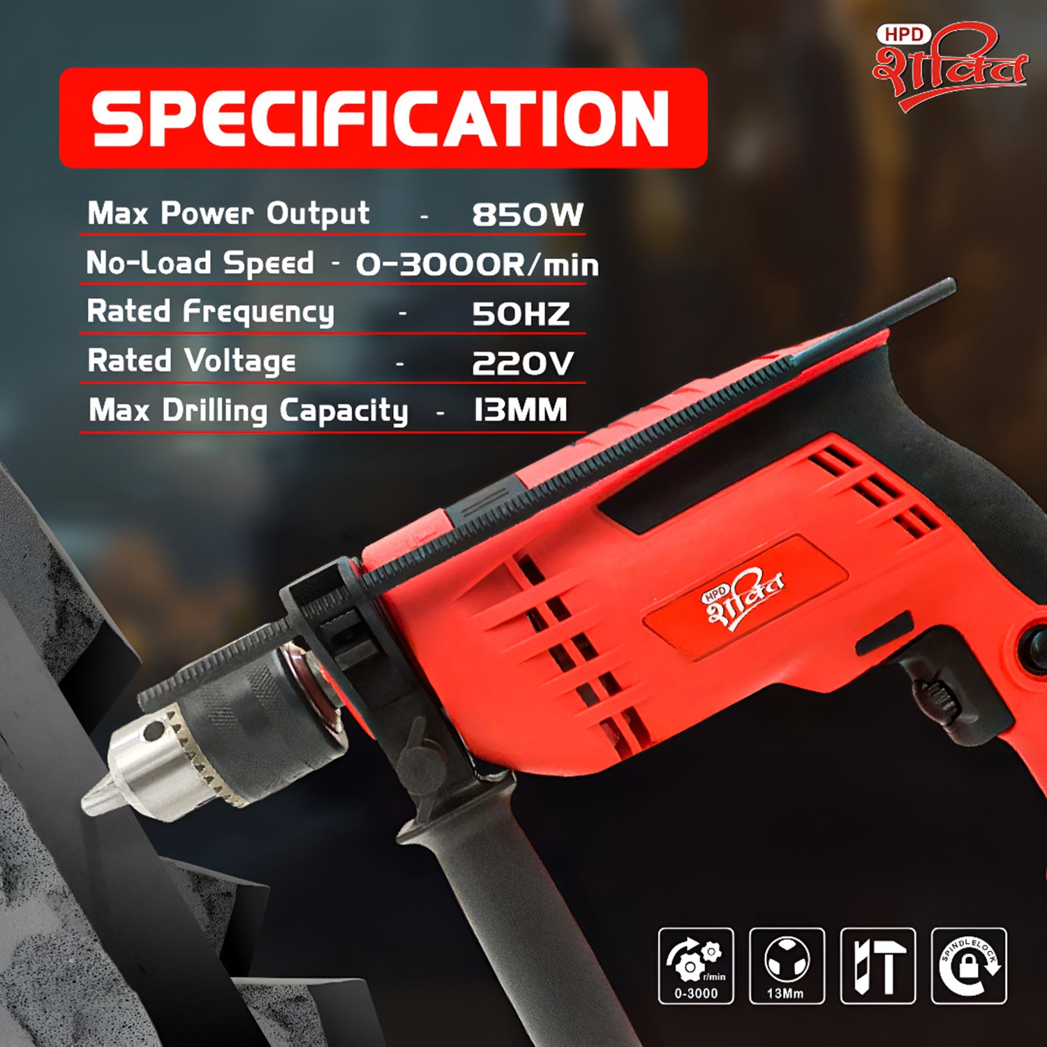 Powerful HPD Shakti 13mm Impact Drill Machine 850W – Dual Mode Hammer + Drill