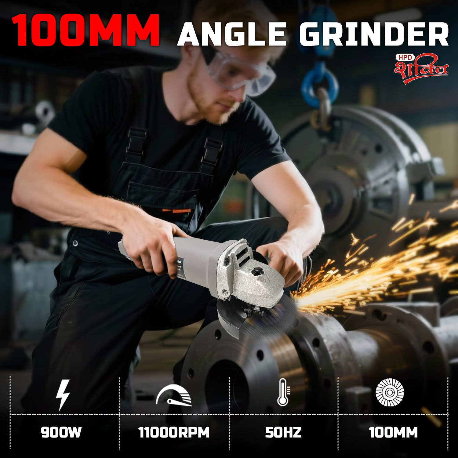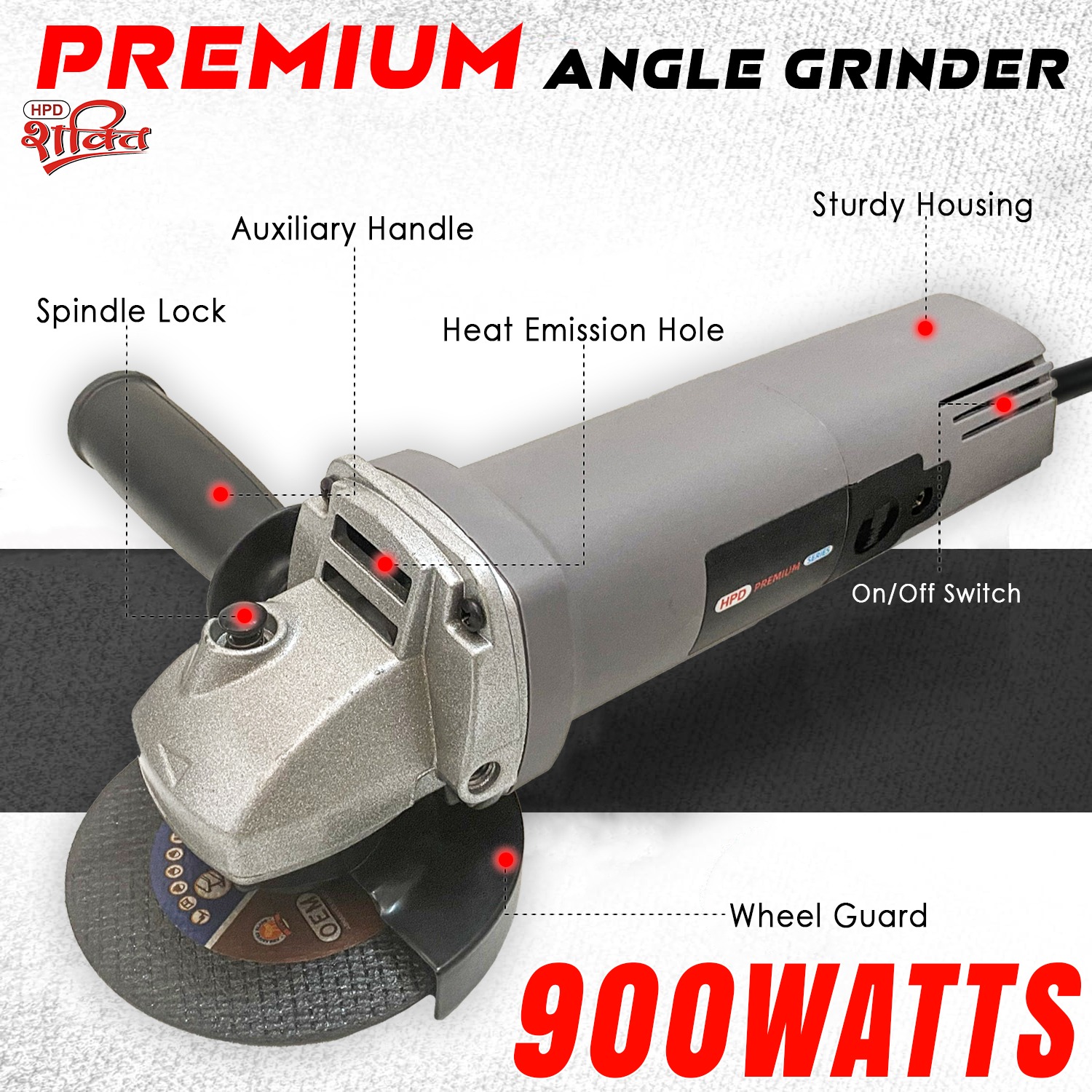 HPD Professional Angle Grinder Machine 900W | 100mm Disc | 11000 RPM | M10 Spindle