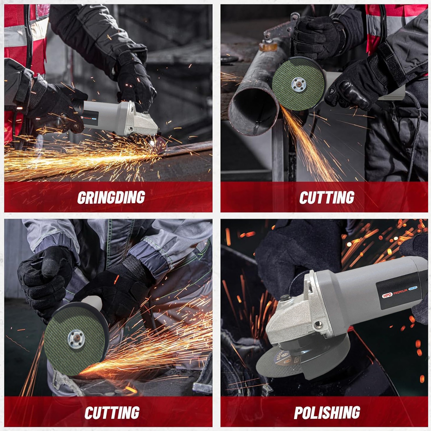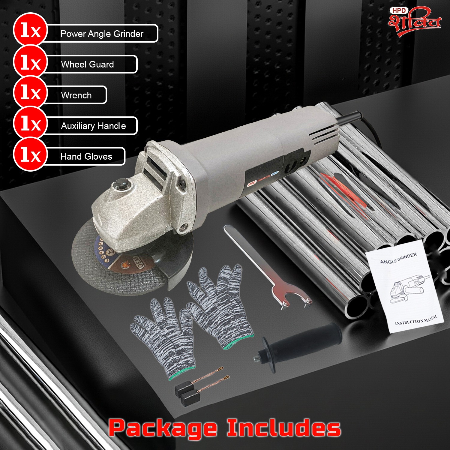 Built with a robust metal housing and efficient heat dissipation system, the HPD angle grinder is engineered for durability and long-term reliability, making it a dependable tool for workshops, job sites, and home improvement tasks