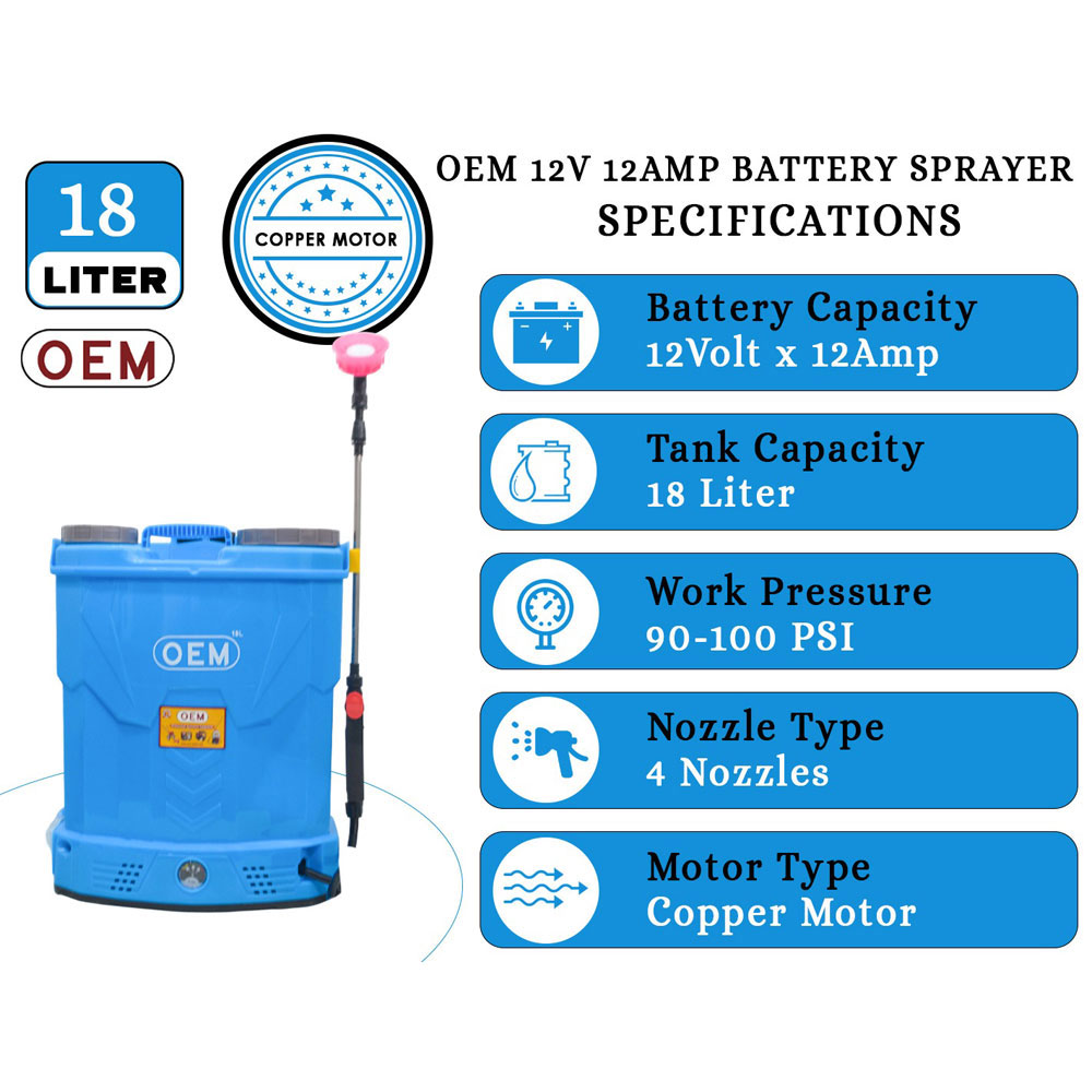 - Model: OEM 12V12A 18L Knapsack Sprayer