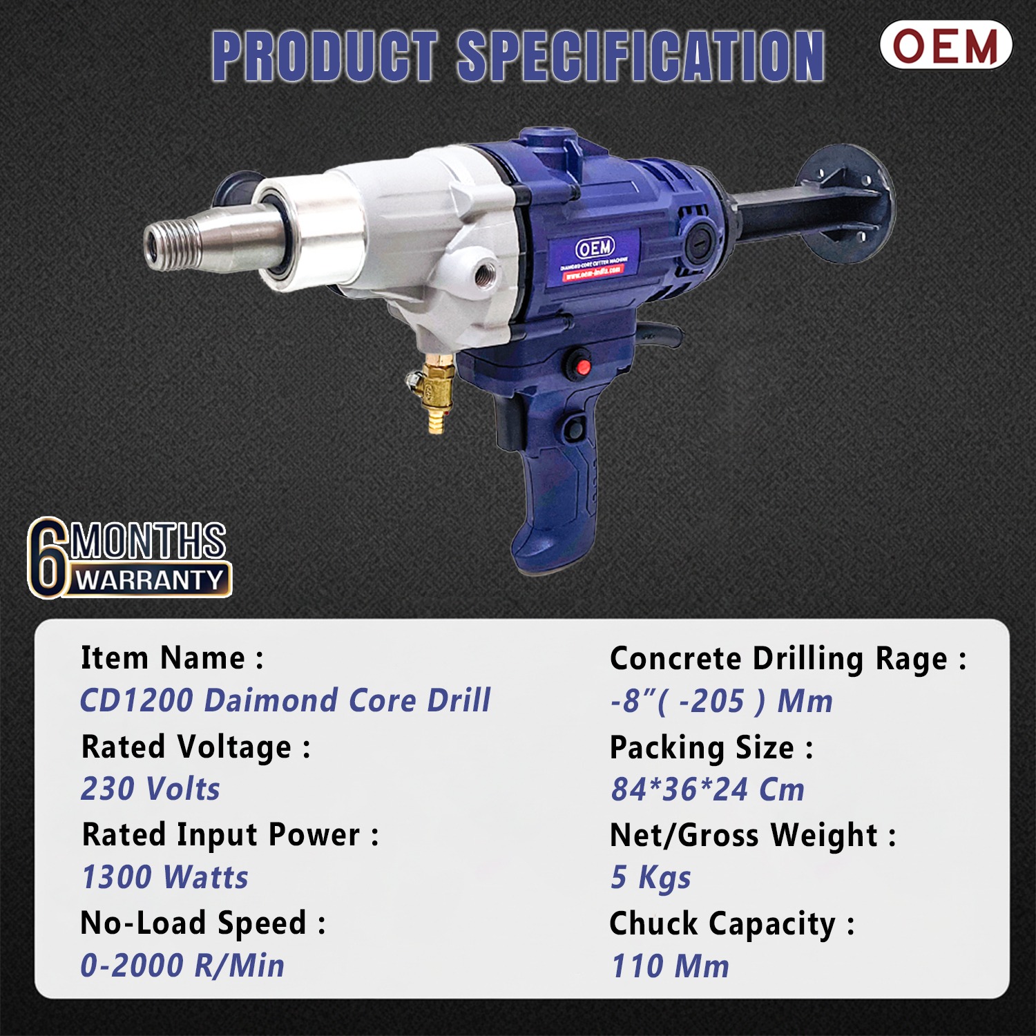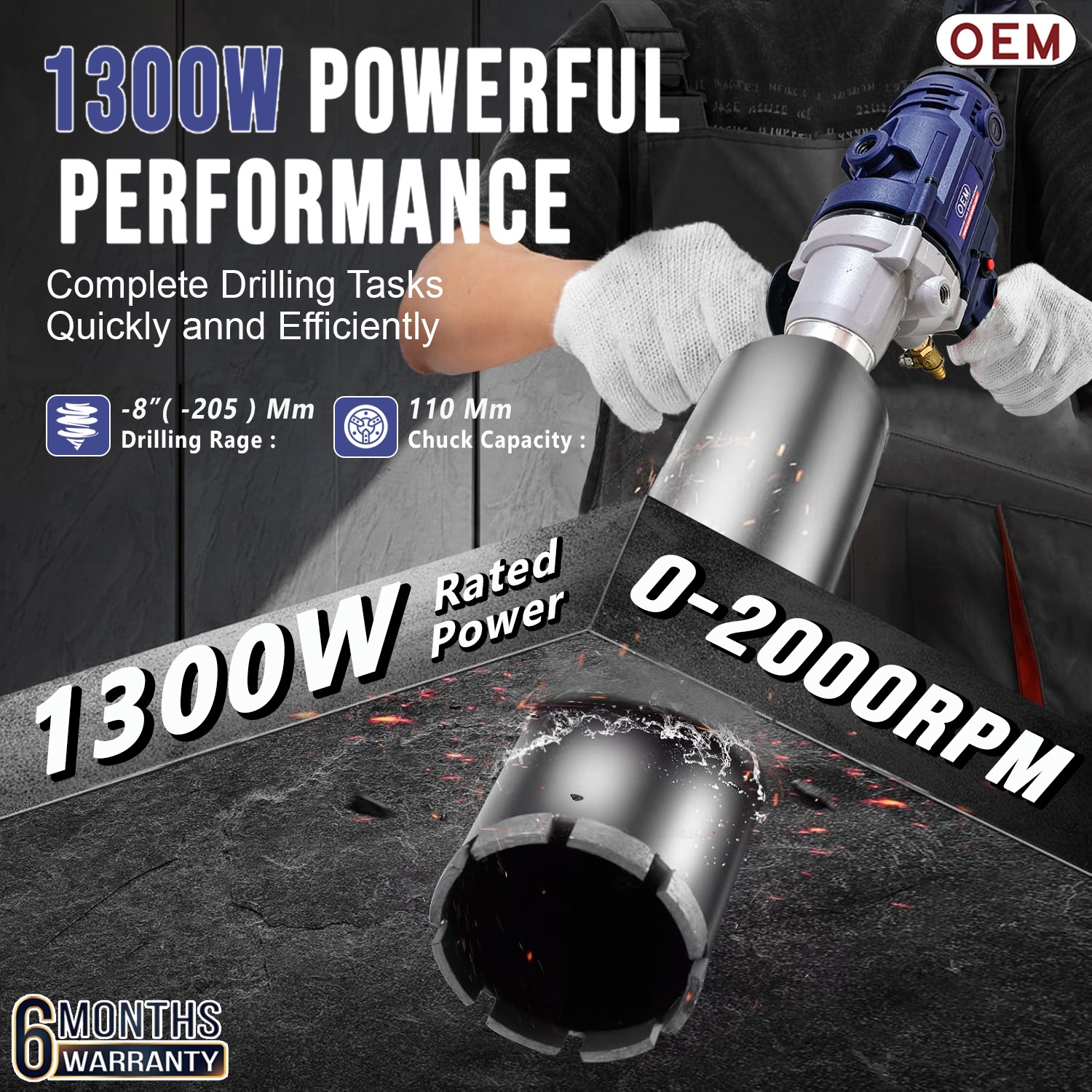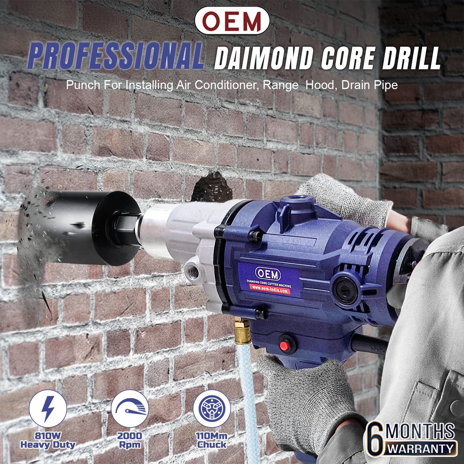 The OEM Professional Heavy-Duty Diamond Core Drilling Machine is engineered to handle demanding drilling tasks in concrete, stone, and brick with ease. Featuring a 2100W full copper motor, this tool provides exceptional power and reliability for both wet and dry drilling applications. Capable of handling drilling sizes ranging from 2 to 4 inches, it’s the perfect choice for professionals and DIY enthusiasts alike, whether you’re tackling construction or renovation projects.