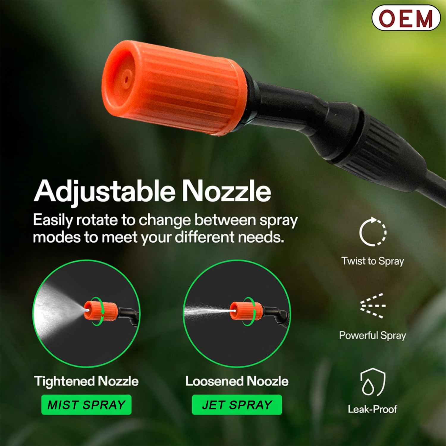 - Adjustable Nozzle Switch between mist and jet spray patterns based on your needs.
