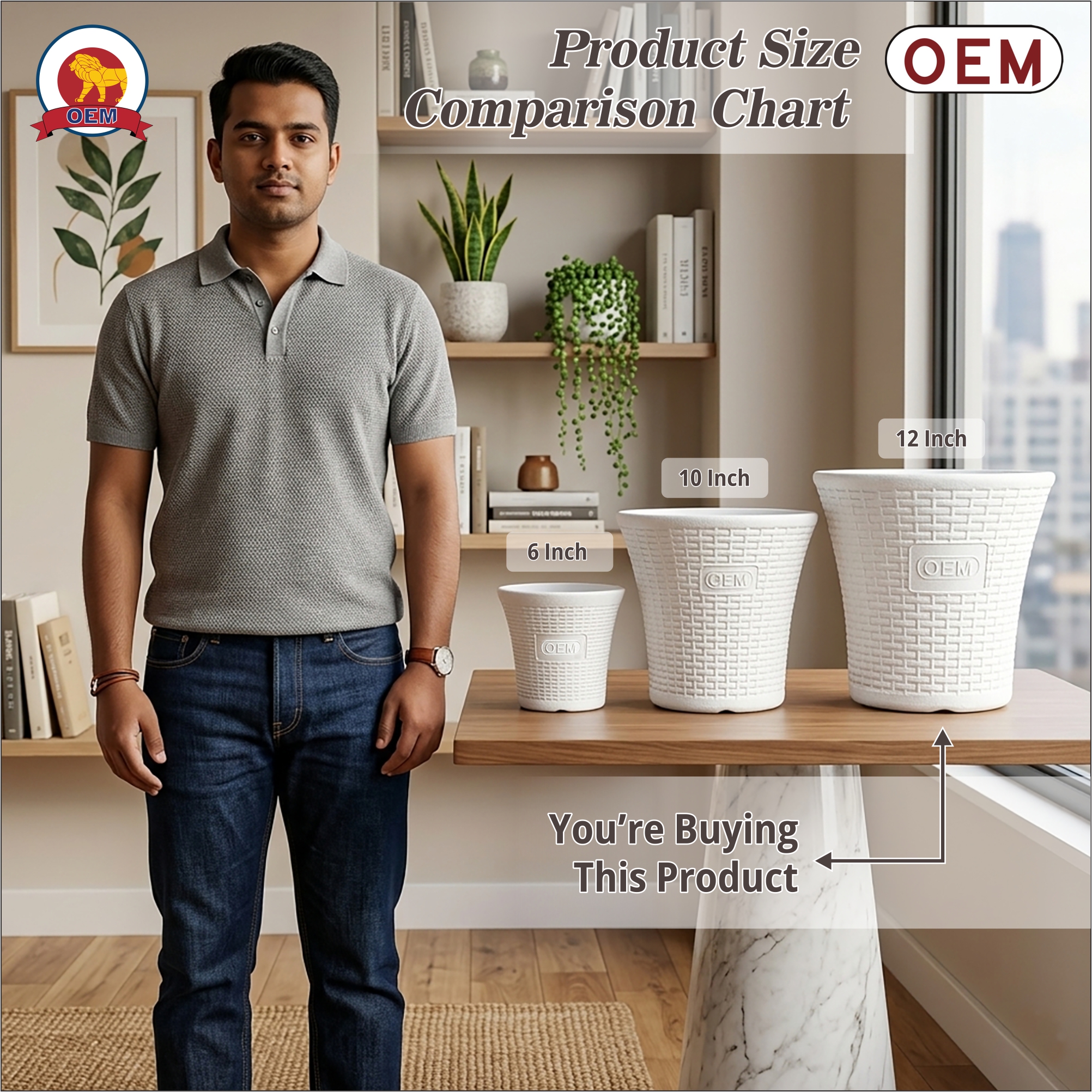 Bring a refined, modern charm to your space with OEM Premium White, Beige & Aqua Green Planters. Designed with a sleek dual-tone finish, these 12-inch planters add a fresh and stylish touch to any home, office, or garden setting. Their versatile look blends effortlessly with minimalist, contemporary, or natural décor styles, making them perfect for living rooms, balconies, terraces, or workspaces.