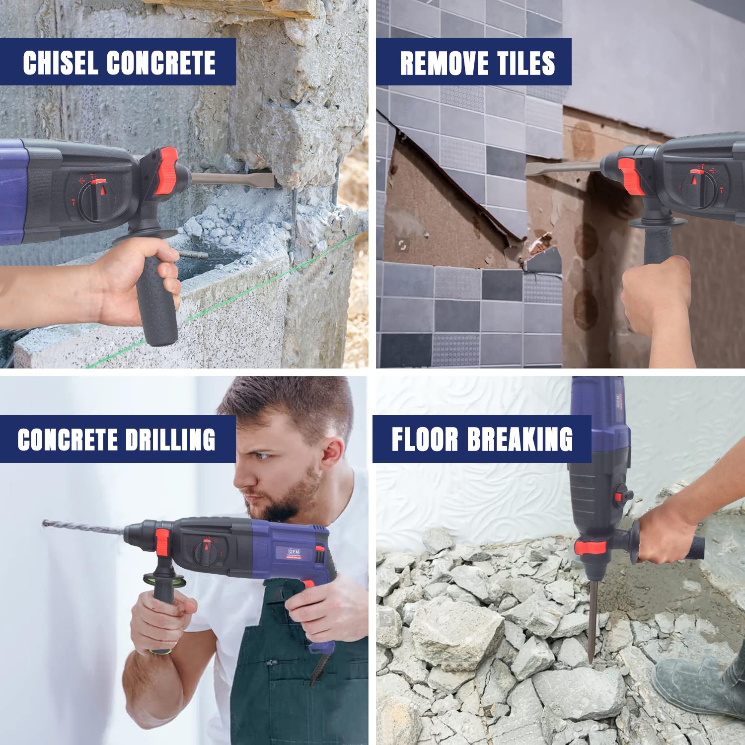 • 3 MODE FUNCTION : Our OEM 26RH 26mm Hammer machine is used for drilling , Hammering and Both Feature for various surfaces Our 900W heavy Professional Hammer is the all you need.